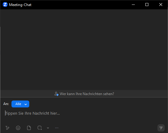 Über das Chat-Symbol ist es möglich, allen Teilnehmenden – oder einzelnen Anwesenden eine persönliche Nachricht zu senden. Über dem Textfeld kannst du auswählen, ob diese Nachricht an alle Teilnehmer verschickt werden soll oder an eine einzelne Person.