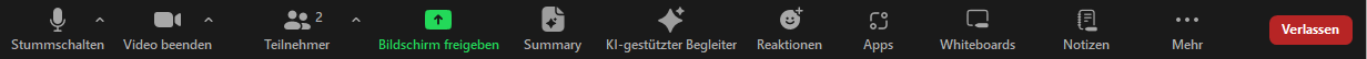 Über das Mikrofon-Symbol kannst du dich stumm oder laut schalten. Bei mehreren Teilnehmerinnen empfiehlt es sich, das Mikrofon stumm zu schalten, um keine Neben- und Hintergrundgeräusche zu übertragen.