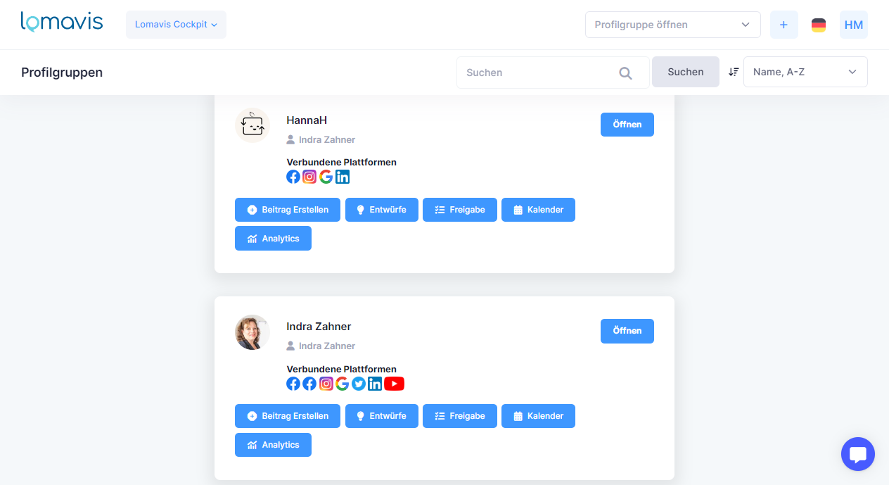 Wenn du eine Agentur hast und deine Kunden ebenfalls Lomavis nutzen, können diese ihr Cockpit einfach mit dir teilen. Deine Kunden können so die Entwürfe und Postingplan einsehen und du erhälst über die Mediathek die Bilder für Beiträge von deinen Kunden.