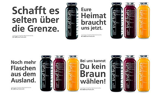 Mit Slogans wie zum Beispiel „Schafft es selten über die Grenze“ oder „Noch mehr Flaschen aus dem Ausland“ wurde der neue Smoothie in den sozialen Netzwerken und auch auf insgesamt 1580 Flächen in Österreich beworben und erreichte schätzungsweise 75 Millionen Menschen. Die Kampagne sollte „eine Kritik an der rechts angehauchten Politik Österreichs“ und ein klares Zeichen gegen Fremdenfeindlichkeit sein. Doch die Botschaft kommt nicht gut an. Die Reaktionen auf die Werbeaktion sind überwiegend negativ und schnell steht der Vorwurf des Rassismus im Raum. Die Kampagne bedient Klischees, mit denen schwarze Menschen beinah täglich konfrontiert werden, heißt es in einem Blogartikel. „Niemand in diesem Land möchte einsehen, dass wir jeden Tag daran erinnert werden, dass wir anders sind. Jeden Tag darauf aufmerksam gemacht, dass Schwarz sein mit einem bestimmten Set von Eigenschaften mit sich trägt“ wird in einem Kommentar unter einem der Bilder von True Fruits geschrieben und fasst die Kritik zusammen.